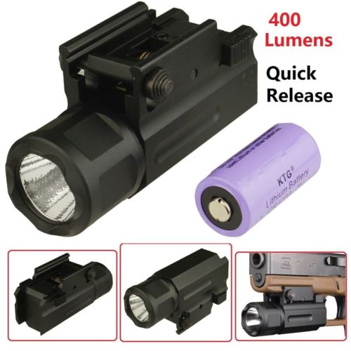 DB TAC Tactical Flashlight 400 Lumens Picatinny Rail Mount LED Light for Pistol Rifle Polymer Quick Detach