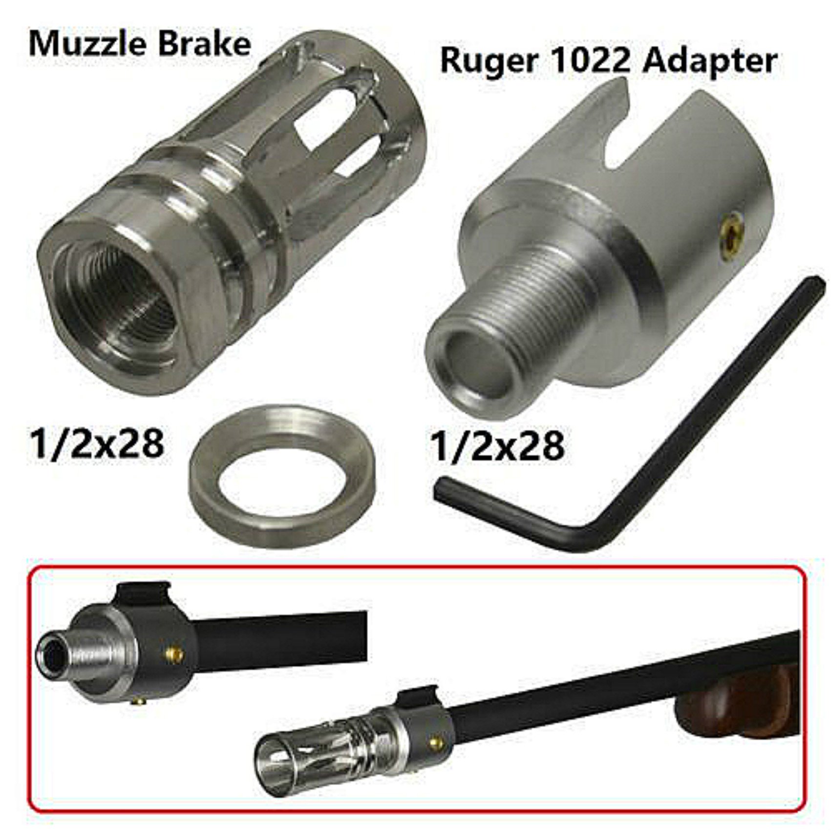 DB TAC Silver Color Ruger 1022 10/22 1/2×28 TPI Thread Adapter Come With 1/2×28 Thread Muzzle Brake Compensator For .22LR