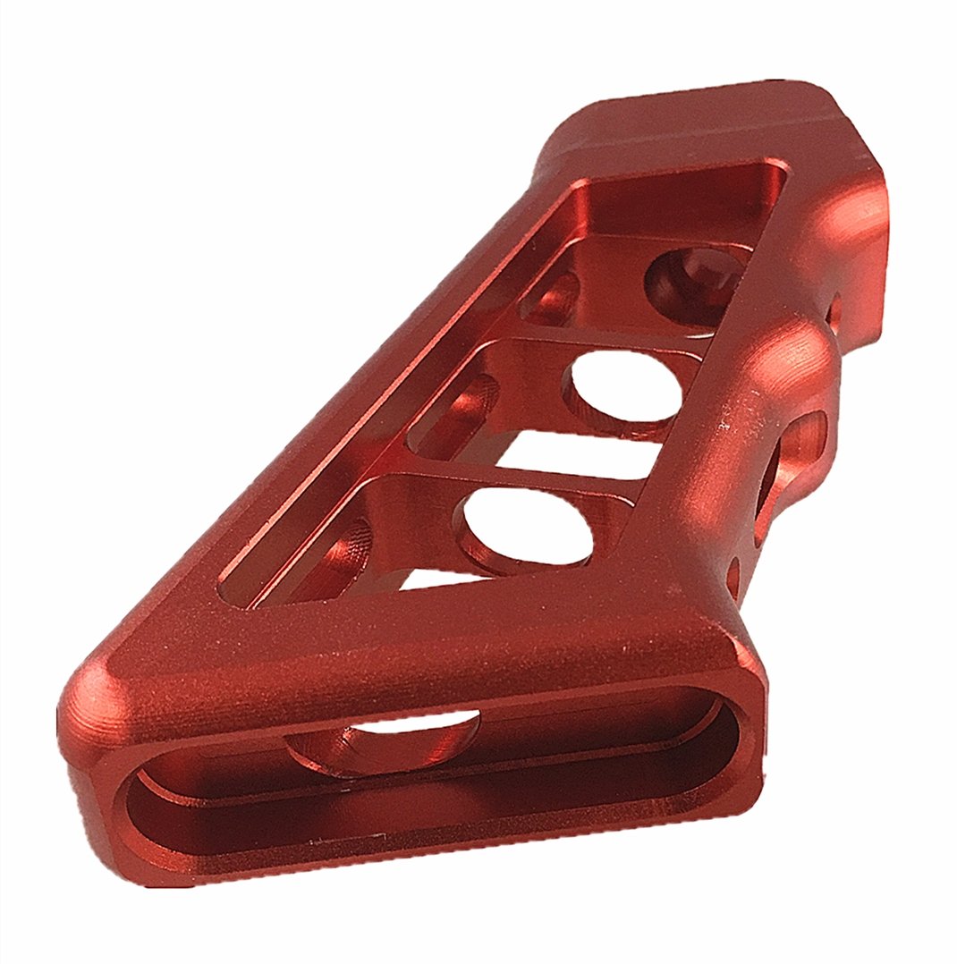 AR Skeletonized Rear Pistol Style Grip, Red Anodized Aluminum.