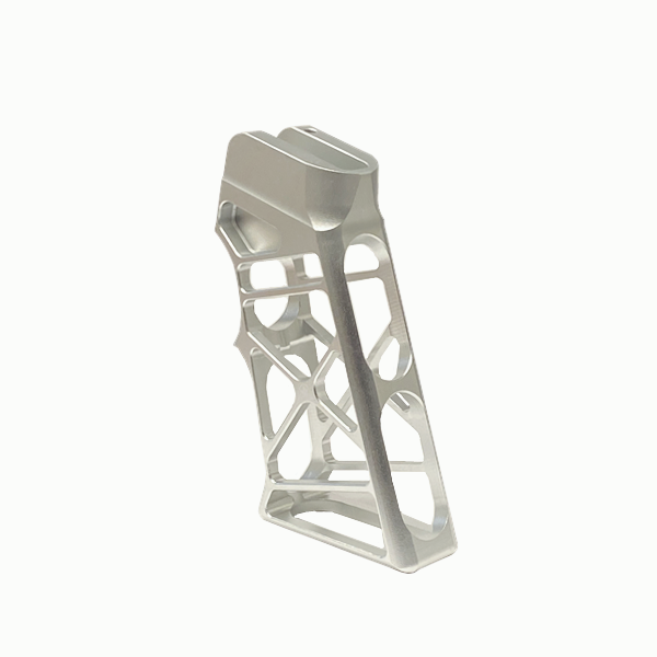 .22/223/5.56/308 Lightweight Skeletonized Rear Pistol Style Grip, Silver Anodized Aluminum.