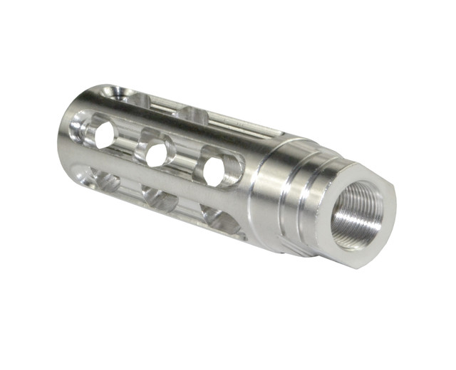 Precision CNC-machined competition muzzle brake with a stainless steel finish designed for .308 / .338 / .300BLK / 9mm / 7.62mm /350Legend barrels with 5/8×24 TPI threads. Short-profile design with side and top ports redirects gas to reduce recoil and muzzle climb. Heat treated for strength and longevity. Includes a free 5/8″ crush washer for proper timing and installation.