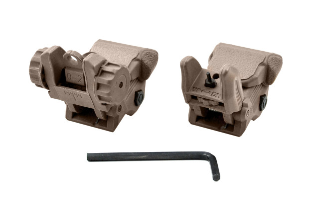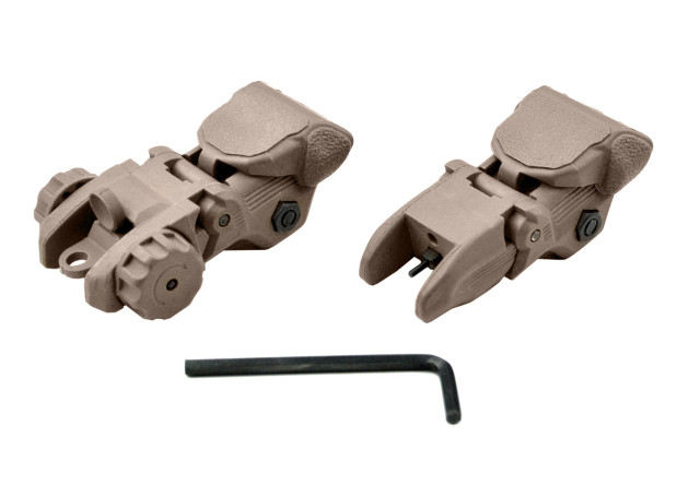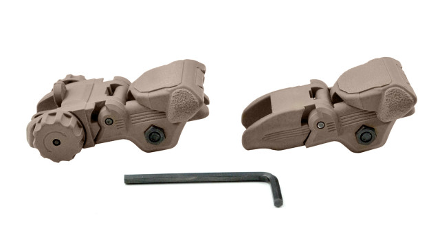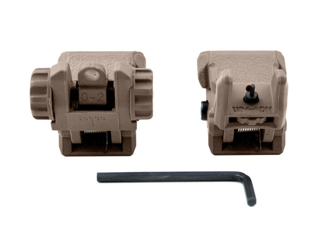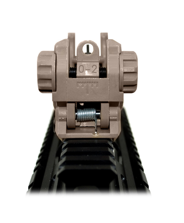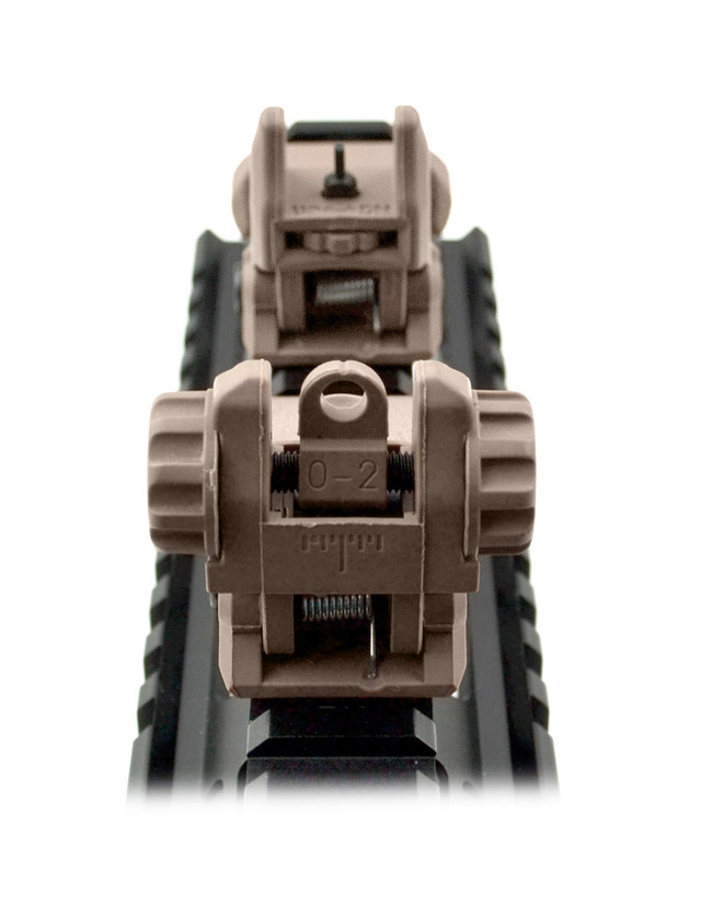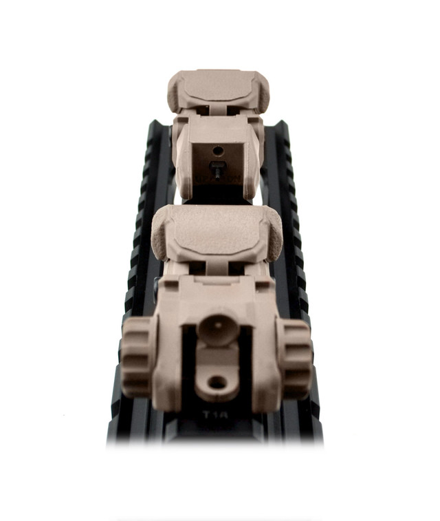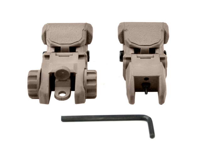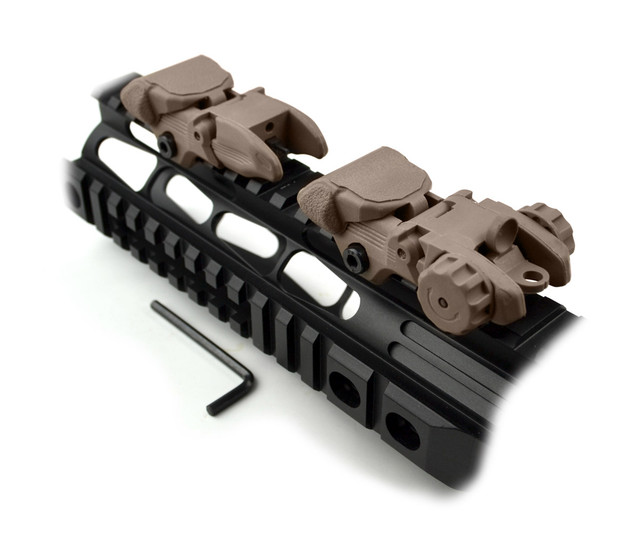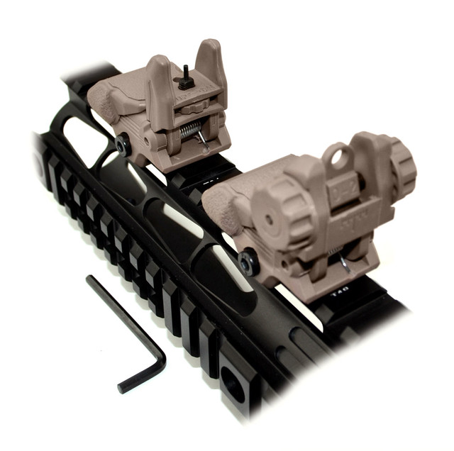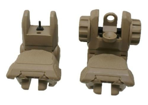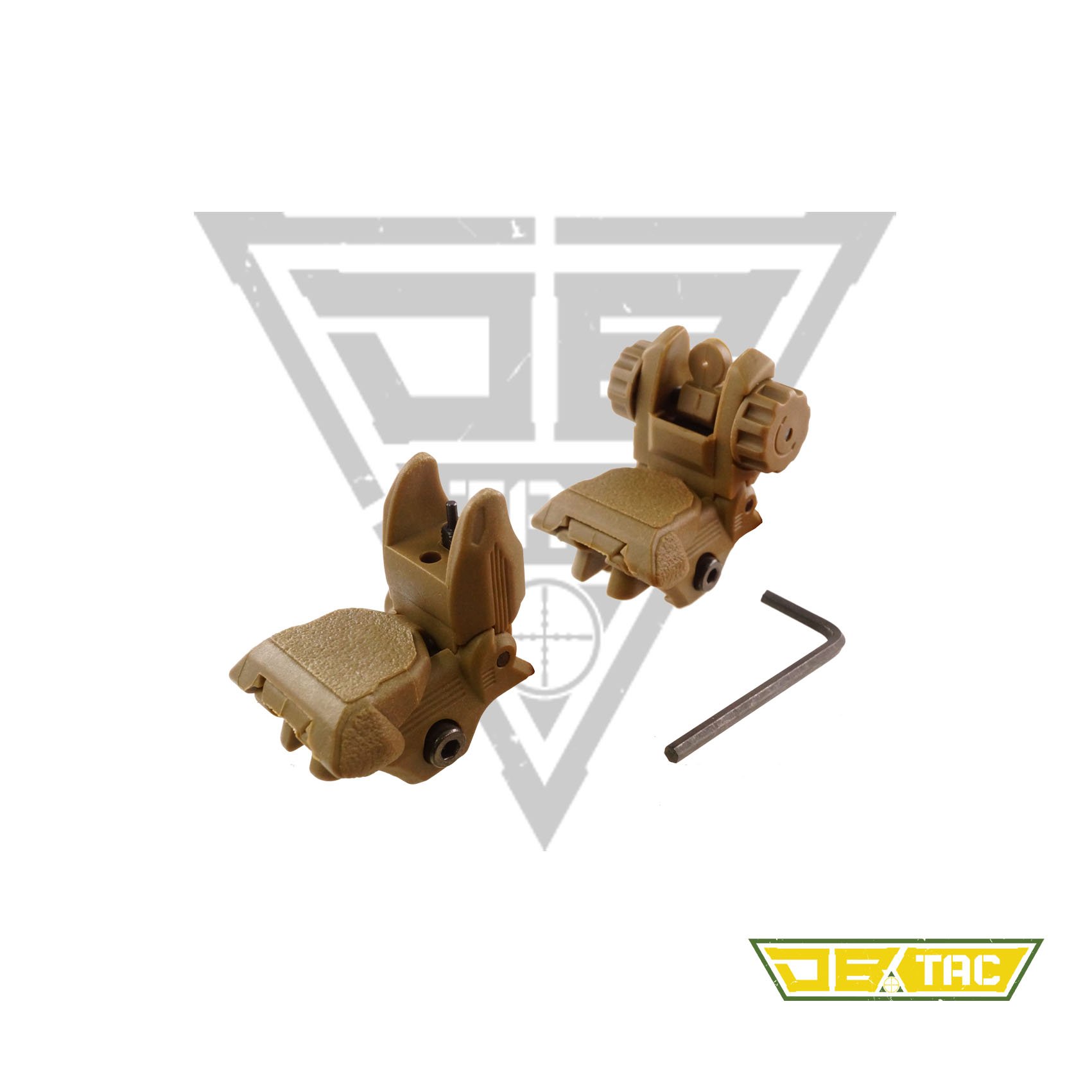 DB TAC Tactical Polymer Picatinny Rail Weaver Rail Front And Rear AR Flip Up Sight Set Tan Color